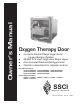 Owner’s Manual Oxygen Therapy Door Converts standard Regal cage into an oxygen therapy chamber Models to fit most single-door Regal cages Door-mounted thermometer/hygrometer Outside compartment for nebulizer and ice New Model Numbers: 12155-00-DRDRAA, 12155-00-DREPAA, 12155-00-EPDRAA, 12155-00-EPEPAA, 12155-00-EPFNAA, 12155-00-EPHJAA, 12155-00-FNFNAA, 12155-00-FNHJAA Former Model Numbers: 102563-1, 102566-1, 102564-1, 102567-1, 102568-1, 102570-1, 102573-1, 102575-1 SSCI Wheeling, IL (800) 323