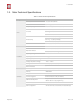 1. Overview % 1.2. Main Technical Specifications Table 1-1. Main Technical Specifications Categories Items Parameters Standards FCC/CE/TELEC/SRRC Protocols 802.11 b/g/n/e/i Frequency Range 2.4G ~ 2.5G (2400M ~ 2483.5M) 802.11 b: +20 dBm Wi-Fi Tx Power 802.11 g: +17 dBm 802.11 n: +14 dBm 802.11 b: -91 dbm (11 Mbps) Rx Sensitivity 802.11 g: -75 dbm (54 Mbps) 802.