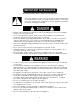 Table of Contents Important Safeguards ....................................................................................................1 - 2 Location of Parts ................................................................................................................. 3 Technical Information ......................................................................................................... 4 Installation Instructions .............................................................................