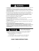 Table of Contents Important Safeguards ......................................................................................................... 1 - 2 Location of Parts ..................................................................................................................... 3 Technical Information .............................................................................................................. 4 Installation Instructions ..............................................................
