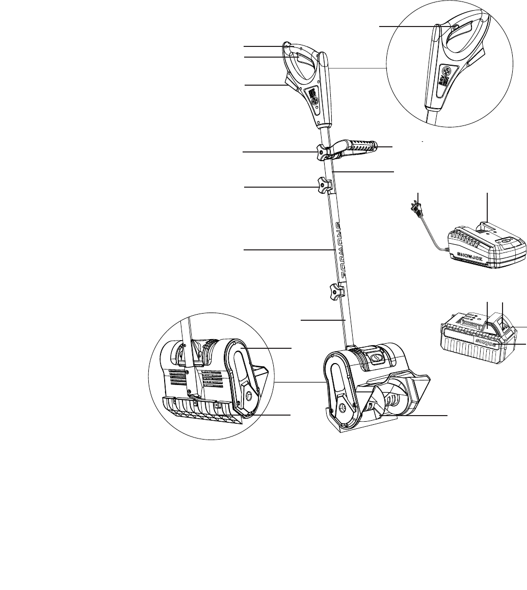 Read the owner’s manual and safety rules carefully before operating your cordless snow shovel. Compare the illustration