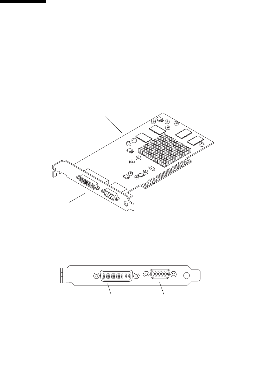 圖 1-2 顯示了 Sun XVR-100 繪圖加速器背板 I/O 連接埠;HD15 與 DVI 監視器接頭。