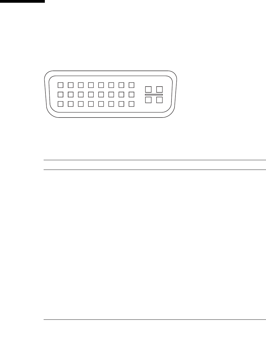 圖 A-3 與表 A-2 顯示了 Sun XVR-100 繪圖加速器 DVI 的接頭與針腳輸出訊號。DVI 視
