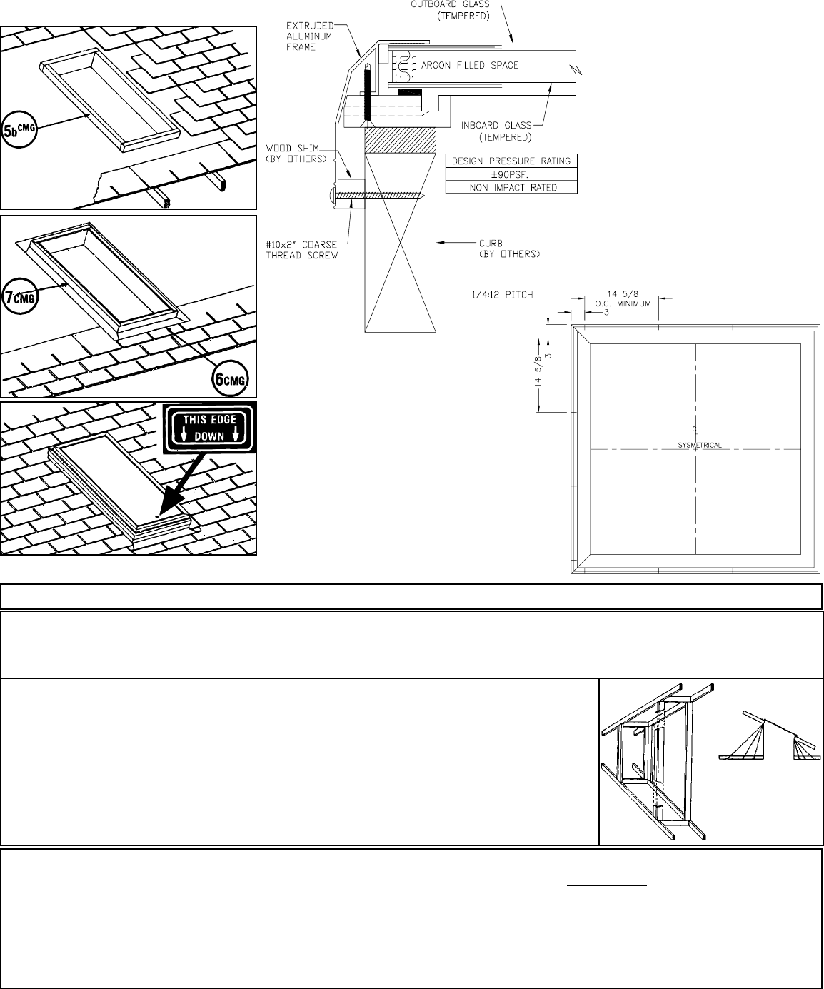 Position the skylight over the curb with the “THIS EDGE DOWN” label at the lowest side of the curb. Center the skylight over the curb,