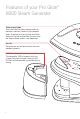 Features of your Pro Glide® 8300 Steam Generator continued Power On Button The power on button will be illuminated RED when the unit is turned on. Low water indicator The low water indicator illuminates to alert you when it is time to refill the water tank. Calc Clean Indicator The Calc Clean indicator illuminates to alert you when its is time to flush the boiler. 6 On/Off Switch This switch controls the internal boiler and the element in the iron soleplate.