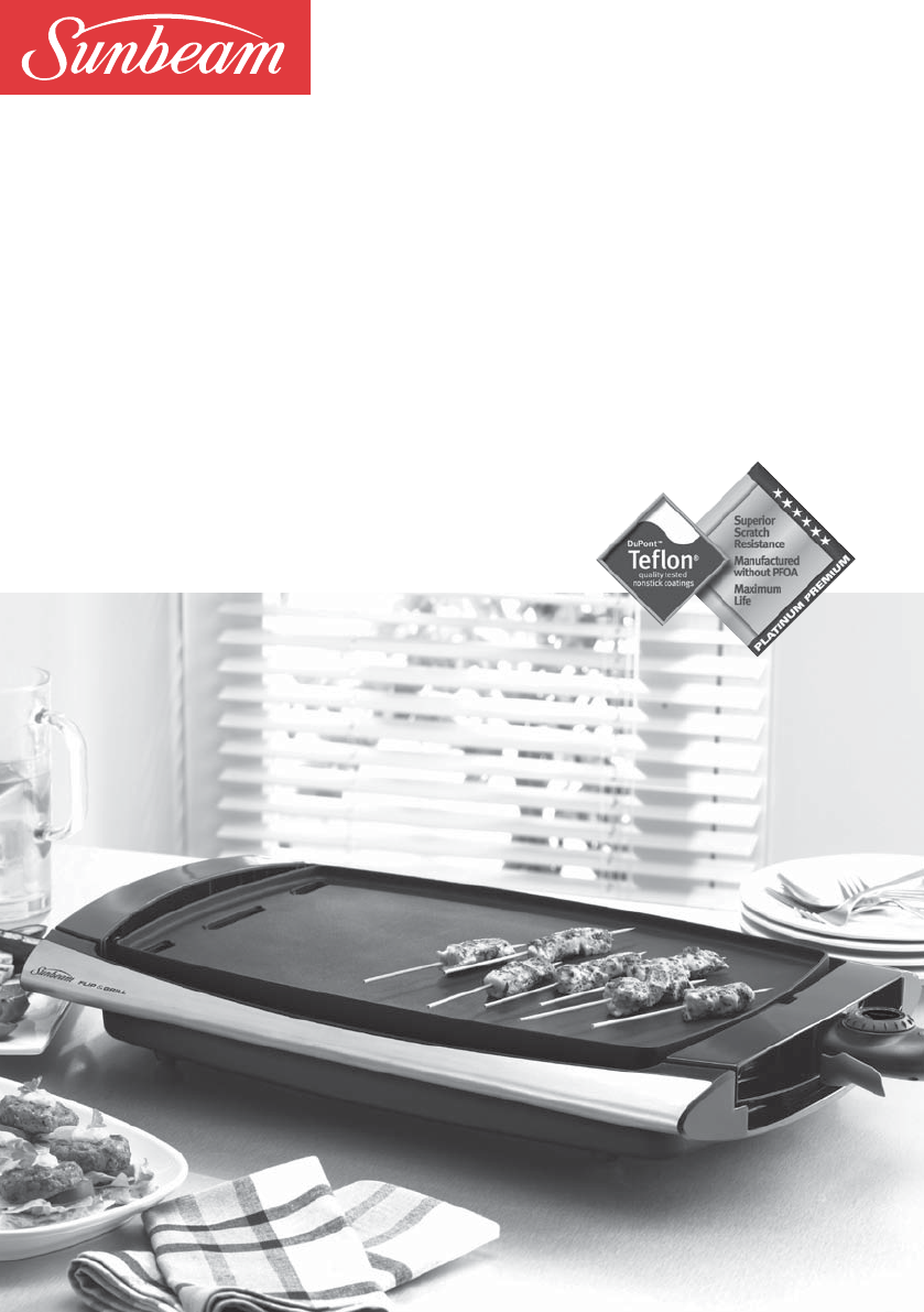 Need help with your appliance? Contact our customer service team or visit our website for information and tips on getting the most from your appliance. In Australia Visit www.sunbeam.com.au Or call 1300 881 861 In New Zealand Visit www.sunbeam.co.nz Or call 0800 786 232 is a registered trademark. ‘Flip & Grill’ is a trademark of Sunbeam Corporation. ‘Teflon’ and ‘Platinum Premium’ are trademarks of DuPont. Made in China.