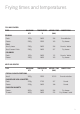 Frying times and temperatures continued VEGETABLES TYPE MAXIMUM QTY TEMPERATURE °C APPROX. TIME (MIN) Beans 200g 180C 2-4 Tempura Broccoli /Cauliflower 250g 180C 3-5 Tempura or batter Eggplant (slices) 150g 180C 4-6 Batter Mushrooms whole button 100g 190C 3-5 Batter / crumbed Onion Rings 150g 180C 3-5 Batter French fries 250g 180C 4-6 Chips 400g 180C 5-10 Wedges 250g 190C 10-15 POTATOES Always blanch potato chips at a lower temp. Then brown at 190ºC.