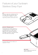 Cool-Zone The 2400 watt heating element is suspended in the oil, creating a ‘cool-zone’ at the bottom of the vessel. This prevents cooking debris burning which will effectively double the useful lifespan of the oil compared with other deep fryers. Temperature control light Temperature control light indicates when the deep fryer is heating the oil. Power on light The power on light indicates when the deep fryer is switched on. On/off switch The on/off switch turns the deep fryer on and off.