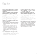 Boiling eggs Before the first use Wipe over the heating vessel with a damp cloth. Wash the plastic parts in warm soapy water, rinse and dry. the measuring cup. To do this, simply place the large end of the egg against the egg piercer and press the piercer into the egg. Boiling eggs Important: Avoid injuries from the egg piercer. Up to 6 eggs can be cooked at one time. 3. Position the egg rack over the heating vessel and place the eggs in the egg rack with the large ends facing down. 1.