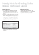 Handy Hints for Grinding Coffee Heading Beans, Herbs and Spices Grinding Coffee Beans Grinding Herbs and Spices • For a good cup of coffee only grind the amount you need for immediate use, as ground coffee quickly loses its flavour and aroma. • For very hard herbs and spices, we recommend processing in ¼ cup batches to prevent overloading the grinder. • With the Sunbeam MultiGrinder II™ coffee beans can be ground to a very fine grind or a coarse grind.