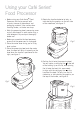 Using your Café Series Food Processor ® • B efore using your Cafe Series® Food Processor, familiarise yourself with all parts, remove all promotional and packaging materials. Use caution when handling blades, as blades are sharp. 3. Rotate the handle clockwise to lock, as indicated by the graphics on the left side of the motorbase, see figure 2. • W ash the processing bowl, processing cover and all attachments in warm water using a mild detergent. Dry each part thoroughly before use.
