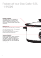 Power ON Light Indicates that the slow cooker is turned on and heating. Cool Touch Handles and Lid Knob Allows you to lift and carry the slow cooker to the table for serving when hot. ��������� � � � ��� �� � Large 5.5 Litre Capacity For cooking family-sized meals. Wrap-Around Element The element surrounds the crock insert to ensure even cooking. It prevents food from sticking to the bottom of the crock insert and eliminates the need to stir your food.