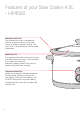 Power ON Light Indicates that the slow cooker is turned on and heating. Cool Touch Handles and Lid Knob Allows you to lift and carry the slow cooker to the table for serving when hot. �������� � ��� �� 4.5 Litre Capacity Suitable for a smaller sized family. � Wrap-Around Element The element surrounds the crock insert to ensure even cooking. It prevents food from sticking to the bottom of the crock insert and eliminates the need to stir your food.
