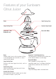 Features of your Sunbeam Citrus Juicer Cover Small Juicing Cone Large Juicing Cone Variable Pulp Control Supersize 1 Litre Removable Jug Reversible Motor Cover Protects fresh juice in the jug when chilling in the refrigerator and also acts as a dust cover during storage. Large Juicing Cone Extracts juice from large citrus fruits, such as oranges. Small Juicing Cone Ideal for extracting juice from small citrus fruits, such as limes.