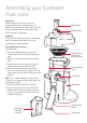 Assembling your Sunbeam Pure Juice Before Use: After unpacking your Pure Juice, we recommend that you dissemble the unit before using for the first time. Wash all parts except the Motor Base in hot soapy water. Rinse and dry immediately. Food Pusher Lid/Feed Tube Important: Always ensure your Pure Juice is unplugged from the power outlet when not in use, assembling or removing parts. To assemble your Pure Juice (See opposite) 1.
