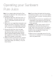 Operating your Sunbeam Pure Juice Note: As an added safety feature the Pure Juice will not operate if the safety levers are not locked in place. 1. Ensure the switch on the Pure Juice is in the ‘Off’ position and plug the cord into a 230- 240V power outlet and turn the power on. 2. Clean fruits and vegetables thoroughly and remove any stems, large pits, stones and seeds. All fruits and vegetables should be cut into pieces to fit into Lid/Feed Tube. 3.