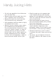 Handy Juicing Hints • Cut fruit and vegetables into suitable sizes to fit the Feed Tube. • Remove stones and hard seeds from fruits such as peaches, plums and apricots. • Remove skin from citrus fruits and other thick skinned fruits eg. watermelon. • Leafy vegetables should be rolled up tightly into compact balls or rolls. • Apricots, bananas, peaches, pears, melons and strawberries are soft-textured fruits. The juice extracted from these fruits is very thick and is known as nectar.