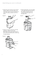 Assembling your juicer (continued) 5. Secure the juicer cover by raising the twinlocking handles and clip the tops to the juicer cover. Press firmly on the lower part of the twin-locking handles to lock into place. 7. Take the food pusher, align the groove on the food pusher with the notch on the inside of the feed chute and slide the food pusher down into the feed chute. Figure 5 Figure 7 6. Slightly tilt the pulp container and slide into place under the juicer cover.
