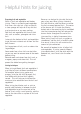 Helpful hints for juicing Preparing fruit and vegetables Wash all fruit and vegetables well before juicing. There is no need to peel vegetables that have a thin skin but a light scrub with a clean sponge will help rid of any dirt that may be stuck on or any waxy coatings. Peel fruit and vegetables that have a thick skin such as melons, pineapple and citrus fruit. Juice only the freshest of fruit and vegetables to get the most nutrients out of them and the best flavours.