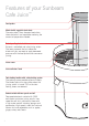 Disassembling your Sunbeam Cafe Juice™ 1. Turn the power ‘Off’ at the power outlet and unplug the cord. 2. Slightly tilt the pulp container and slide away from the juicer – figure 8. 4. Lift the juicer cover from the juice collector/bowl – figure 10. Figure 10 Figure 8 3. Place fingers under the bottom of the twin-locking handles and lift to release – figure 9. Figure 9 5. Place fingers under the rim of the stainless steel blade and filtering basket and lift out – figure 11.