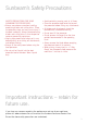 Sunbeam’s Safety Precautions • • • • • • • • Sunbeam are very safety conscious when designing and manufacturing consumer products, but it is essential that the product user also exercise care when using an electrical appliance. Listed below are precautions which are essential for the safe use of an electrical appliance: Read carefully and save all the instructions provided with an appliance. Always turn the power off at the power outlet before you insert or remove a plug.