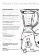 Features of Your Sunbeam MultiProce Processing cover The processing cover activates the automatic safety system. The MultiProcessor will not operate unless the cover is correctly positioned on the processing bowl and locked into place. 800 Motor base The base houses a powerful 800 watt motor, which provides great processing results every time. Pulse button Increases the intensity of the standard processing action to assist in the most demanding tasks.