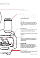 essor Plus Ingredient cup Handy 70mL ingredient cup. Food pusher Guides food evenly down the feed tube and can also be used to close the chute while processing to prevent food from escaping through the feed tube. Feed tube The feed tube is used to guide ingredients down into the selected blades and allows you to add ingredients during other processing tasks. Processing cover The processing cover activates the automatic safety system.