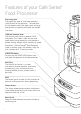 Features of your Café Series Food Processor ® Processing cover The processing cover or lid of bowl provides a safety feature to the appliance. The appliance will not operate unless the bowl, cover and large feed pusher are correctly positioned and locked into place. 1400 watt induction motor The die-cast base houses a powerful 1400 watt motor. This motor is ideal for high load applications during processing, and provides a greater starting strength whilst maintaining speed throughout.