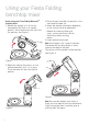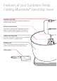 Features of your Sunbeam Fiesta Folding Mixmaster® benchtop mixer Attachment eject button The eject button effortlessly releases the beaters or whisks for easy cleaning. Off-centre head and beaters The head of the Mixmaster® benchtop mixer and beaters are positioned off-centre to the bowl to make it easier to add ingredients during mixing. Stainless steel mixing bowl 3.5 litre mixing bowl is ideal for mixing ingredients and can be used as a separate bowl.