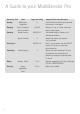 A Guide to your MultiBlender Pro Processing Task Food Suggested Setting Aerating Milkshakes, Smoothies 2 Chopping Nuts, Chocolate, Garlic or Herbs PULSE Crumbing Bread Crumbs PULSE & 2 Biscuit Crumbs 2 Crushing Ice Use chilled milk. Blend until desired consistency is achieved. Process 1/2 cup at a time, to ensure evenly sized pieces. Tear bread roughly. Process until desired consistency. Break into pieces and process until crumbed. PULSE & 3 Add 1/4 cup of water.