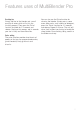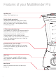 Features uses of MultiBlender Pro Crushing Ice Simply add ice to the blender and a small quantity of water, which will aid in the crushing process. Then press the ‘Pulse’ function and hold for 1-2 seconds and release. Continue this process and in seconds your ice is fluffy and snow flake-like. You can also use the Pulse function for cleaning the blender. Simply pour in some warm water and a small amount of detergent, press the ‘Pulse’ function for 1-2 seconds and release. Repeat 3-4 times.