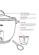 Care and cleaning After using your Rice Perfect, turn the power off and remove the cord from the power outlet. The lid, removable pan, measuring cup and serving spoon should be washed in warm water using a mild detergent. DO NOT use harsh abrasives to clean the removable cooking pan as these will damage the nonstick coating. The exterior of the cooking vessel can be wiped over with a damp cloth. CAUTION: Never immerse the heating vessel in water. DO NOT place any part of your Rice Perfect in a dishwasher.