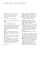 Using your Rice Perfect 1. Before using your Rice Perfect for the first time wash the cooking pan, lid, measuring cup and serving spoon in warm soapy water. Rinse and dry thoroughly. 2. Using the measuring cup provided, measure out the required quantity of rice. NOTE: 1 level cup measure = 180mls. 1 cup of uncooked rice = 2 cup of cooked rice (approximately). 3. Using a sieve, wash rice thoroughly under cold water before cooking. This removes excess starch which helps to achieve fluffier rice.