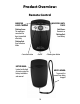 Product Overview: Remote Control INDICATOR LIGHTS: POWER INDICATOR LIGHTS: TRANSMIT Solid Green: Remote is on Flashing Green: The warning or correction has been transmitted effectively Flashing Red: Over Correction Mode Flashing Red: Low battery • Correction button • On/Off • Warning tone button BATTERY DOOR: Located on the back of remote control for battery installation and removal WRIST LANYARD: To prevent the remote from being dropped 3