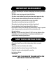 IMPORTANT SAFEGUARDS • This device should only be used when training dogs for deterring unwanted behavior. • This device is not a toy; keep out of reach of children. • This device is not intended to provide protection against aggressive dogs. • This basic remote trainer should only be used on one dog at a time. • Your dog should be in good health when using this product. • This product is not to be used on dogs less than 9 lbs. • This product is not to be used on dogs less than 6 months old.