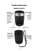 Product Overview: Remote Control INDICATOR LIGHTS: POWER INDICATOR LIGHTS: TRANSMIT Solid Green: Remote is on Flashing Green: The warning or correction has been transmitted effectively Flashing Red: Over Correction Mode Flashing Red: Low battery • Correction button • On/Off • Warning tone button BATTERY DOOR: Located on the back of remote control for battery installation and removal WRIST LANYARD: To prevent the remote from being dropped 3