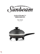 Contents Sunbeam’s Safety Precautions Sunbeam’s Safety Precautions 1 Features of your Sunbeam DuraCeramic™ 25cm Skillet 2 Parts & Accessories 4 Usage Instructions 5 Care & Cleaning 6 Temperature Setting Guide 7 Cooking Guide 8 Recipes Troubleshooting SAFETY PRECAUTIONS FOR YOUR DURACERAMIC™ 25cm SKILLET. • Use your skillet at least 200mm away from walls and curtains. • Do not immerse the control probe in water. • If using a plastic spatula do not leave in cooking vessel when hot.