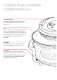 Features of your Sunbeam CO3000 NutriOven Temperature Control Variable temperature control allows you to select the perfect temperature for each cooking task. Lid The lid contains the heating element and the fan so it will become extremely hot during use. Always remove lid using the handle and always place the hot lid correctly on the lid stand. Never place the hot lid on the benchtop. Glass Bowl Tempered glass bowl is dishwasher safe. Easily removable from the base stand.