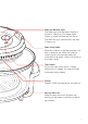 Care and Cleaning • The NutriOven is incredibly easy to clean. • Always turn the power off and remove the plug from power outlet after use and before cleaning. • Allow the tempered glass bowl and accessories to cool down before cleaning. • It is important to clean the oven after each use for good food safety hygiene and to prevent a build up of grease or residue and to prevent unpleasant odours. • Never place the lid element down on the bench surface. Use the Lid Holder to brace the lid during use.