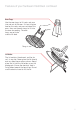 Features of your Sunbeam NutriOven continued Oven Tongs Use the oven tongs to lift racks and pans into and out of the oven. It’s best to place food on the racks and pans outside of the oven, then use the oven tongs to lift into the oven for cooking. The oven tongs are not to be used to lift food. Tongs in use Lid Holder The lid contains the element and the fan so it is very hot. Never place the lid directly onto any benchtop or other surface.