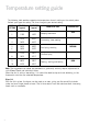 Temperature setting guide The following table provides approximate temperatures for each setting on the control probe. Preheat your frypan on setting 7-8, then change to your desired setting.
