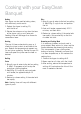 Cooking with your EasyClean Banquet continued Frying The frypan is ideal for shallow or dry frying. Deep frying is not particularly suitable as the frypan has shallow sides and a greater surface area, which results in heat loss and the possible overflow of oil. Pan frying: Suitable for eggs, omelettes, bacon, sausages, steaks and chicken pieces. Preheat to settings 5-6 with a little oil to add flavour. Non-stick cooking surfaces do not require a large amount of oil.