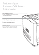 Features of your Sunbeam Café Series™ 2 slice toaster Extra wide & deep bread slots Enables you to toast a large variety of breads – regardless of thickness. Self-centring bread slots Whether you are toasting thick or thin bread, your bread will always be held in the centre of the slot to ensure even toasting. Removable crumb tray Push to release the large crumb tray from underneath your toaster for easy cleaning.