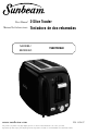 User Manual Manual de Instrucciones 2-Slice Toaster Tostadora de dos rebanadas MODEL/ MODELO TSSBTR2SLB www.sunbeam.com The product you purchase may differ slightly from the one shown in this manual due to the variety of models. El producto que Ud. compro puede diferir ligeramente del producto mostrado en el manual debido a la variedad de modelos. P.N.