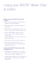 Using your BRITA® Water Filter & Chiller Before using your BRITA® Water Filter & Chiller • Remove any packaging and promotional material from the packaging. • Remove the filter cartridge and keep in a safe place. • Remove the lid and filtering tank and wash in warm soapy water, rinse and wipe dry. • Wipe out the filtered water tank with a damp cloth which has been soaked in soapy water. • Position the appliance on a dry, level and secure bench top. • Allow good airflow around the appliance.