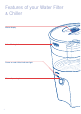 Using your Water Filter & Chiller Before using your Water Filter & Chiller • Carefully unpack the appliance and check that all the components are included. • Place a large container or jug under the spout. • Remove the filter cartridge and keep in a safe place. • Repeat this flushing process twice with cold tap water and discard. • Remove the lid and filtering tank and wash in warm soapy water, rinse and wipe dry.