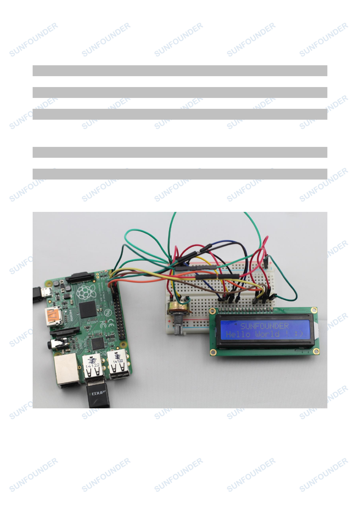 You should see two lines of characters displayed on the LCD1602: "SUNFOUNDER" and "Hello