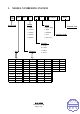 II. SPECIFICATION 1. MECHANICAL CHARACTERISTIC MOTOR DESIGN 2 phases, 4-poles Brushless DC motor BEARING SYSTEM Lubricated sleeve bearing system DIMENSIONS See Page 6 MATERIALS OF FRAME Thermoplastic PBT of UL 94V-0 MATERIALS OF FAN BLADE Thermoplastic PBT of UL 94V-0 DIRECTION OF ROTATION Counter-clockwise viewed from front of fan blade MOUNTING HOLES Diameter 4.3 mm in 8 holes WEIGHT 19.5 g 2. ELECTRIC CHARACTERISTIC RATED VOLTAGE 12 VDC RATED CURRENT 90 mA / Max.