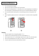 Filling the Tank with water Place the air cooler on a level ground and follow the steps below: Lock Lock ① Pump ② ③ 1. Rotate the water tank lock to horizontal position then pull out the water tank; Picture ① 2. Raise the water pump frame when the water tank is pulled out around 3/4 way, then remove the tank completely to fill or when cleaning; Picture ②. 3. Fill the tank with clean water 4. Re-install the water tank and the water pump frame and push the tank into position; 5.