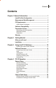 Contents Contents Chapter 1 General Information ................................................ 1 Install Profiler Configuration ......................................... 1 Measurement Data Management ................................... 2 PC Requirements ............................................................ 2 USB to Serial Port Adapter ....................................................... 2 Software Compatibility ................................................... 3 Preparation for Use .........